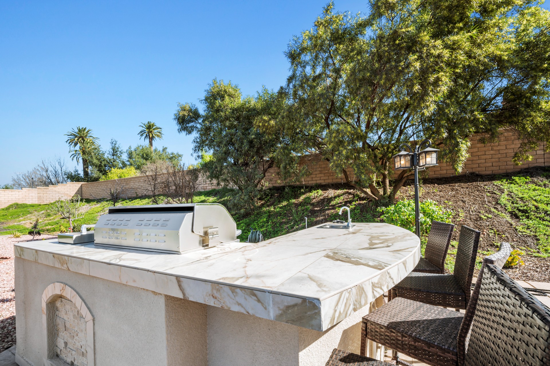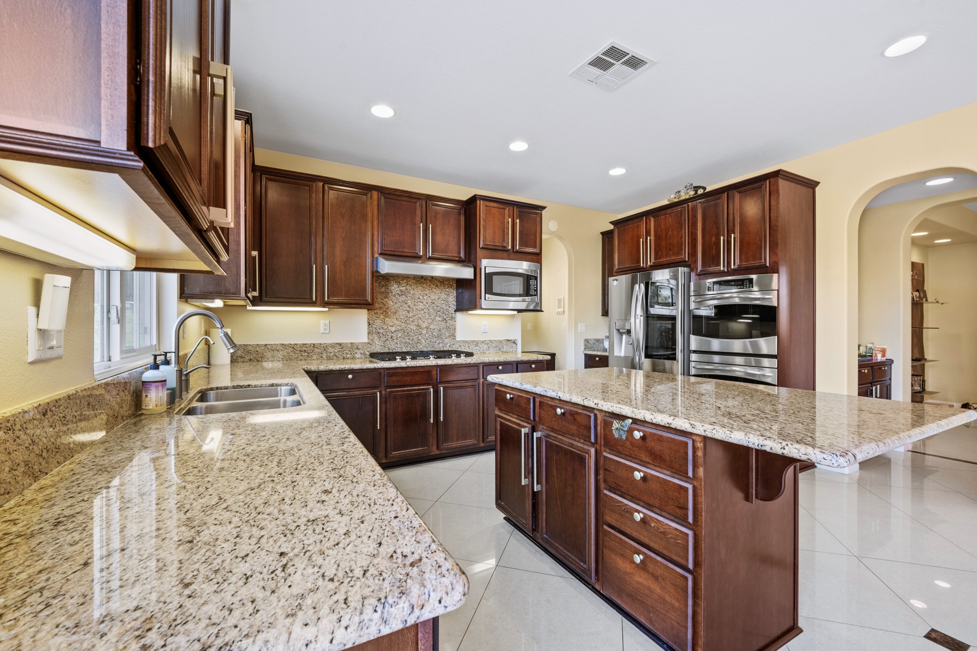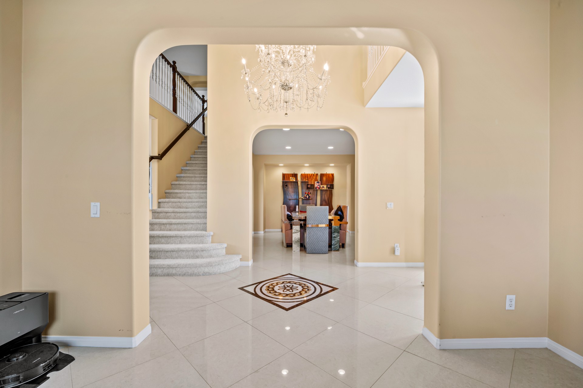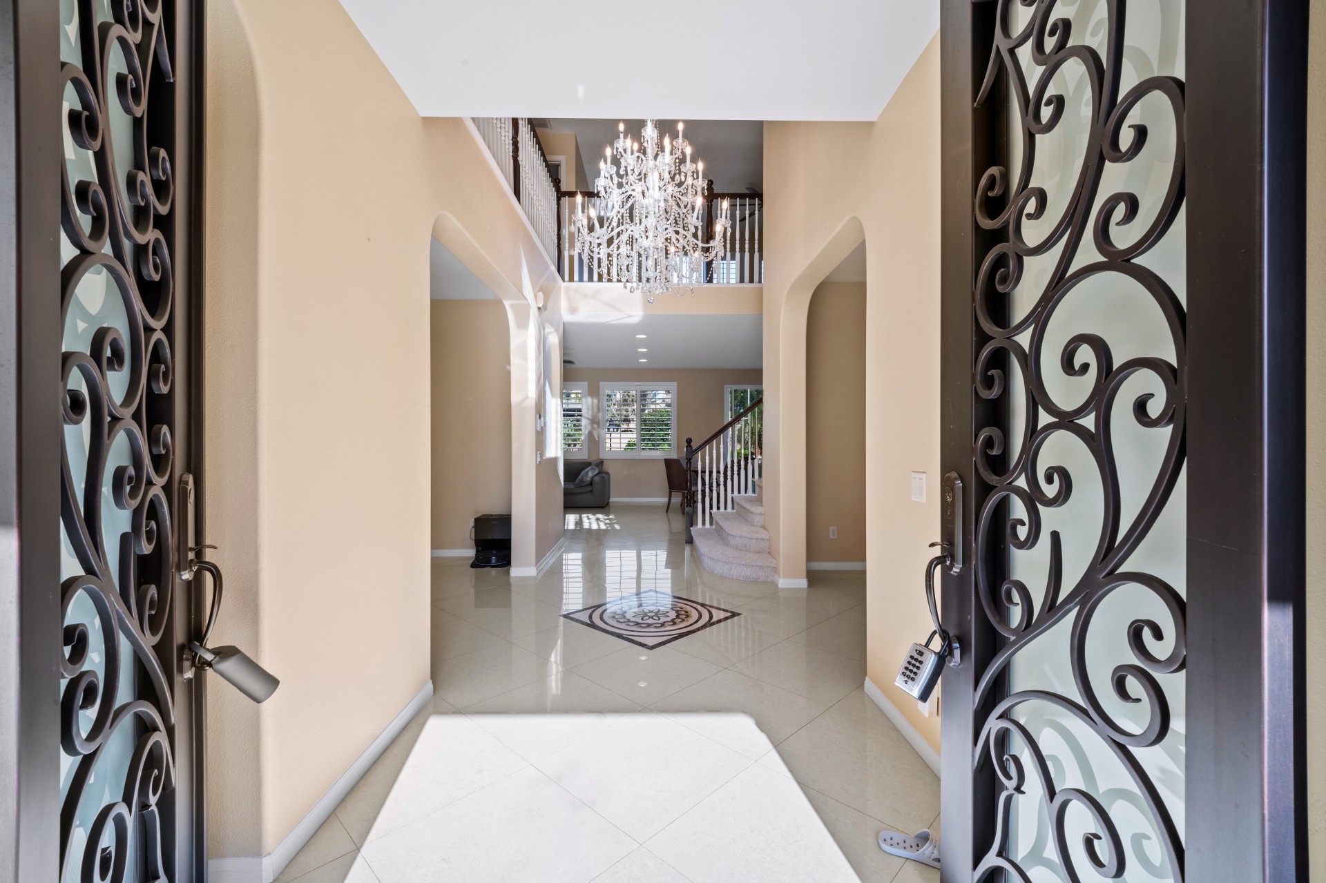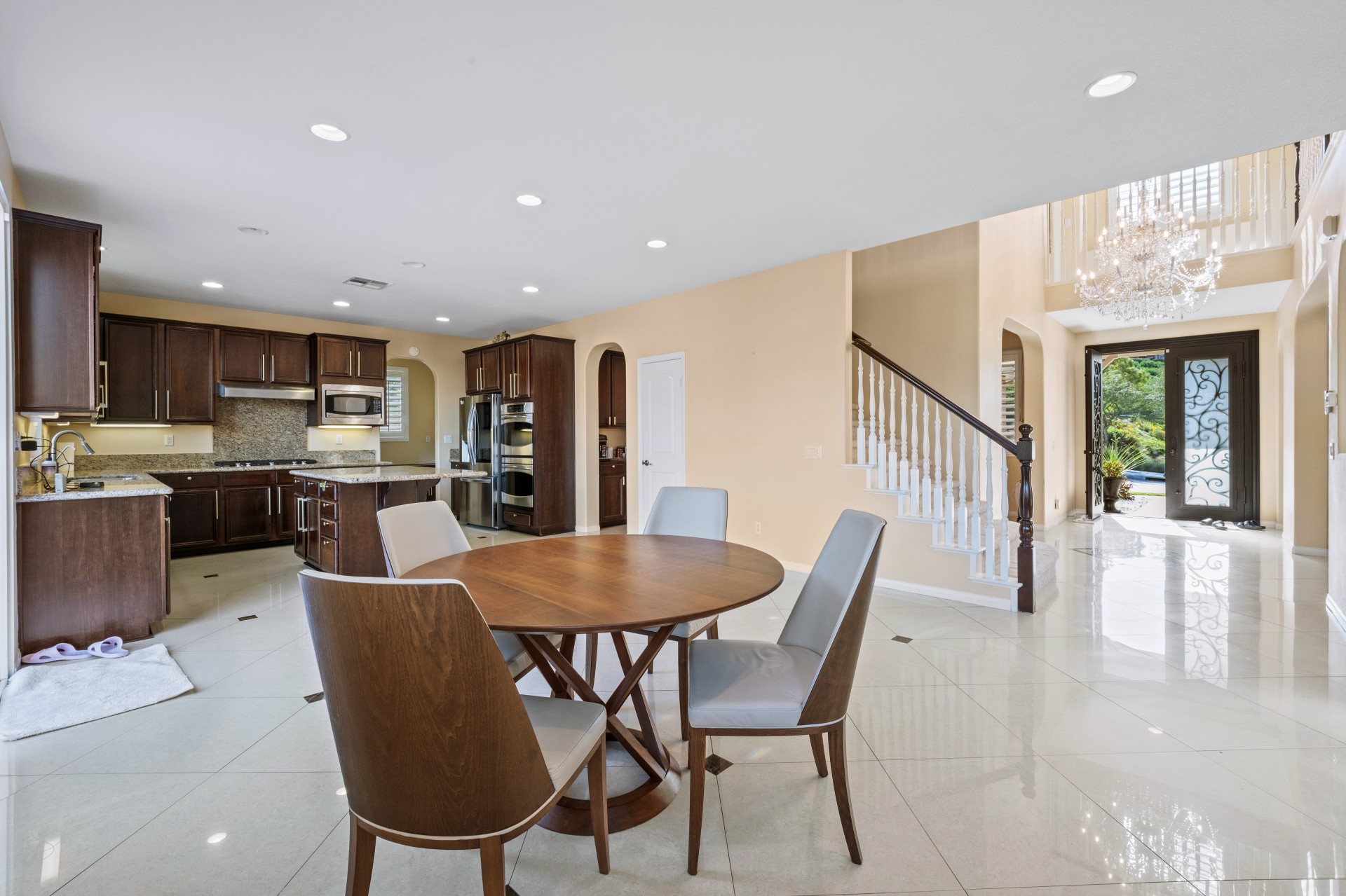 Nestled within the prestigious Sierra Bella community, this magnificent estate presents an unparalleled blend of elegance, space, and serene, fruit-filled privacy. Situated on a sprawling half-acre lot with beautifully landscaped gardens and many fruit trees, this home offers over 3,200 square feet of thoughtfully designed living space, perfect for both grand entertaining and comfortable family living. A grand formal entry, illuminated by a stunning chandelier, welcomes you and flows effortlessly into the formal living and dining rooms—ideal for hosting memorable gatherings. The heart of the home is an expansive great room, featuring rich 24″x24″ porcelain tile, a cozy fireplace, and abundant recessed lighting. It opens seamlessly into a chef’s dream kitchen, complete with a large island, walk-in pantry, granite countertops, and stainless-steel appliances including a double oven and 5-burner gas cooktop. The main floor also includes a convenient bedroom and full bath, perfect for guests or a home office. Upstairs, a versatile loft leads to three additional bedrooms, another full bath, and a breathtaking master suite. The master retreat features picturesque backyard views, a spa-like bath with dual vanities, a soaking tub, separate shower, and his-and-hers walk-in closets. Additional highlights include a downstairs laundry room and a spacious 3-car garage. Located just minutes from the 91 Freeway, La Sierra Metrolink Station, and the California Citrus State Historic Park, this home provides easy connectivity to Orange County and Los Angeles while offering a peaceful, private sanctuary. Don’t miss the opportunity to own this exceptional Sierra Bella residence. Schedule your private tour today!