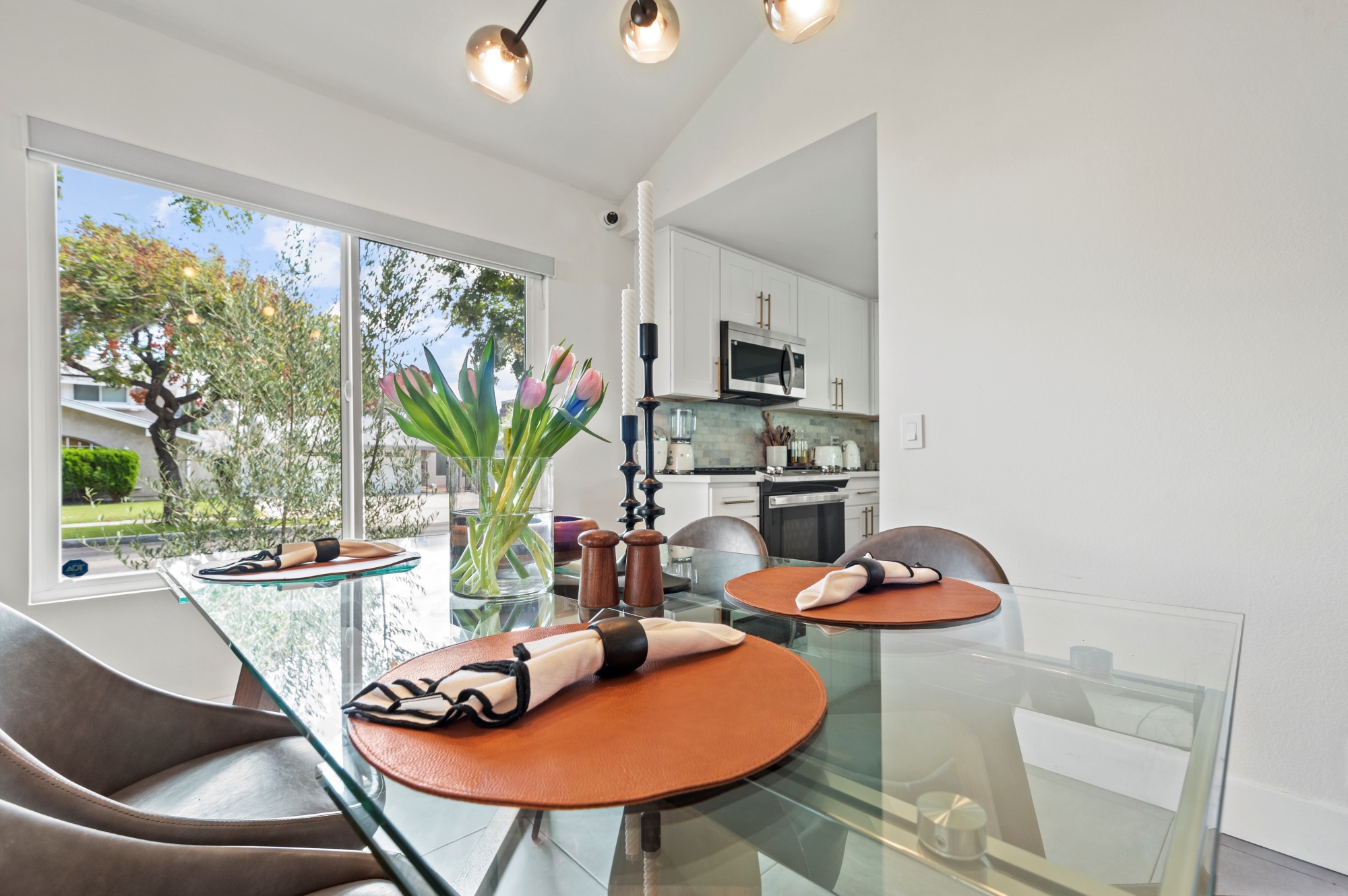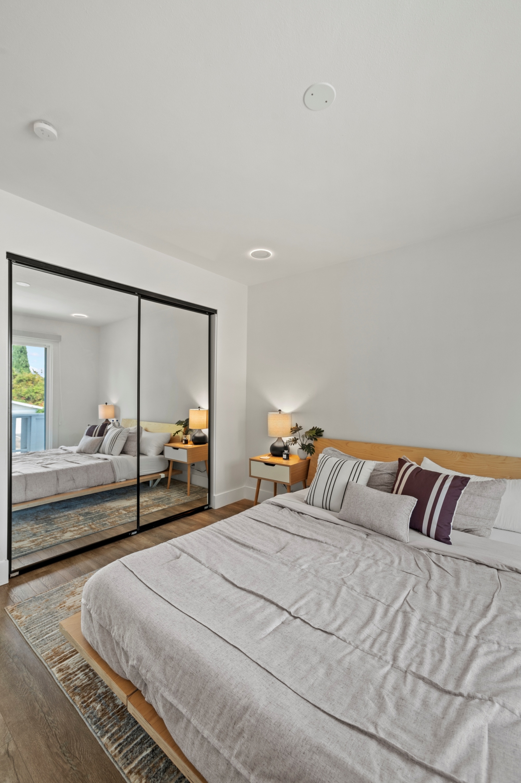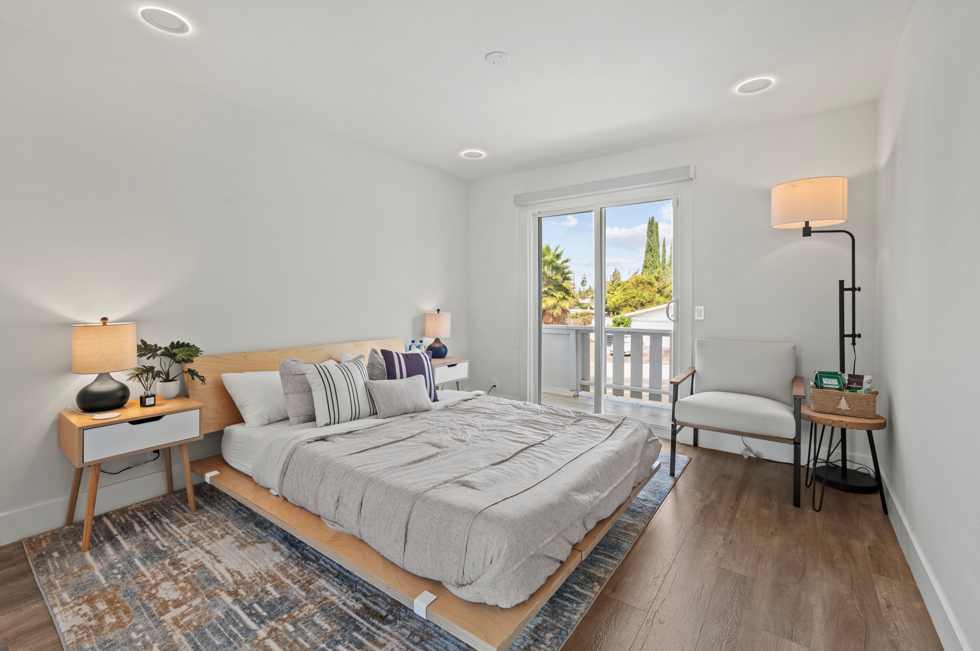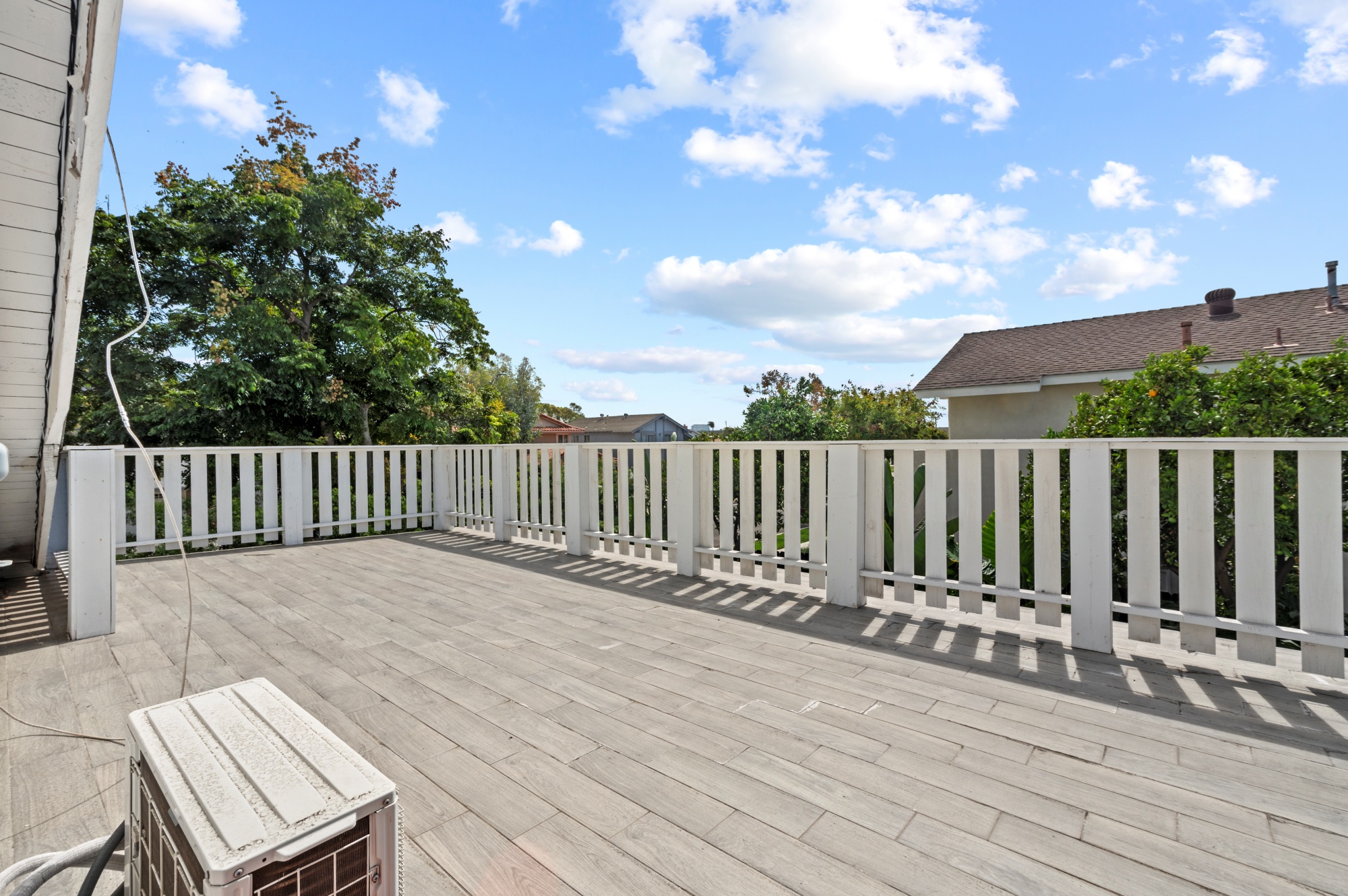 Modern Living on a Spacious Corner Lot – Fully Renovated & Move-In Ready! Set on a desirable corner lot, this beautifully upgraded home offers a rare blend of style, comfort, and functionality in a prime location. From the moment you arrive, you’ll notice the newly designed front and rear landscaping, along with a private backyard and an expansive second-story deck—perfect for entertaining guests or unwinding in peace. Step inside to a bright, open interior featuring brand-new tile flooring on the main level, luxury vinyl floors upstairs, and a striking hardwood staircase with a modern glass railing. The entire home is enhanced by recessed lighting and a custom-built entertainment center in the living room. The heart of the home is the fully remodeled kitchen, showcasing sleek quartz countertops, classic white shaker cabinets, and stainless-steel appliances—a true chef’s delight. All bathrooms have been tastefully renovated less than three years, offering a fresh, contemporary vibe. With four bedrooms and three full bathrooms, this home is designed with flexibility in mind. The layout includes a convenient downstairs bedroom and full bath—ideal for guests or multi-generational living—while upstairs you’ll find three additional bedrooms, including a spacious primary suite complete with a custom walk-in closet. Additional highlights include Built-in water softener, new window blinds, Quiet Street location near Sandpointe Park, just 5 minutes from South Coast Plaza, Easy access to the 405, 55, and 73 freeways. This is more than just a house—it’s a thoughtfully upgraded home in one of the area’s most convenient neighborhoods. Don’t miss your chance to own this turnkey gem!