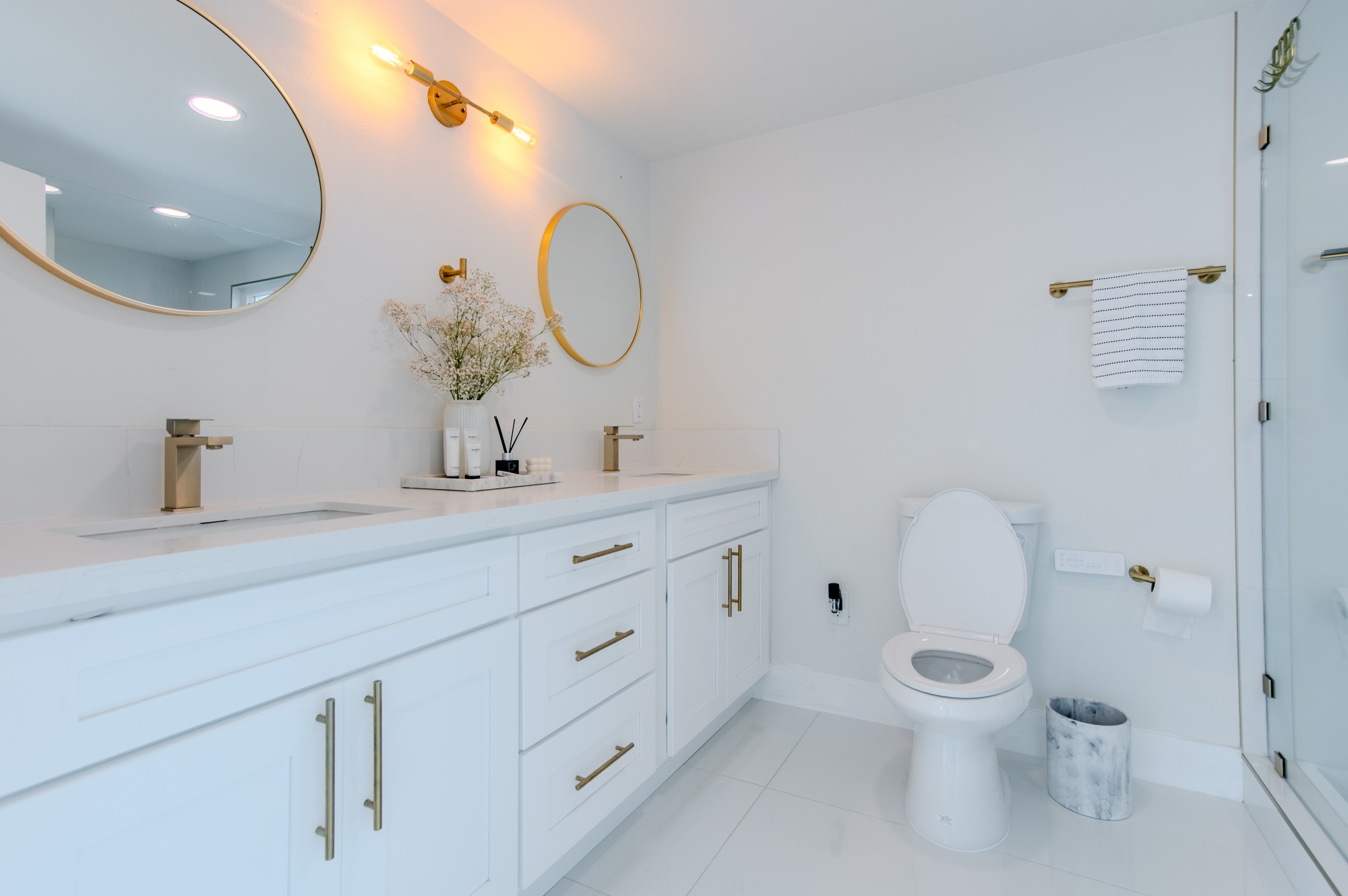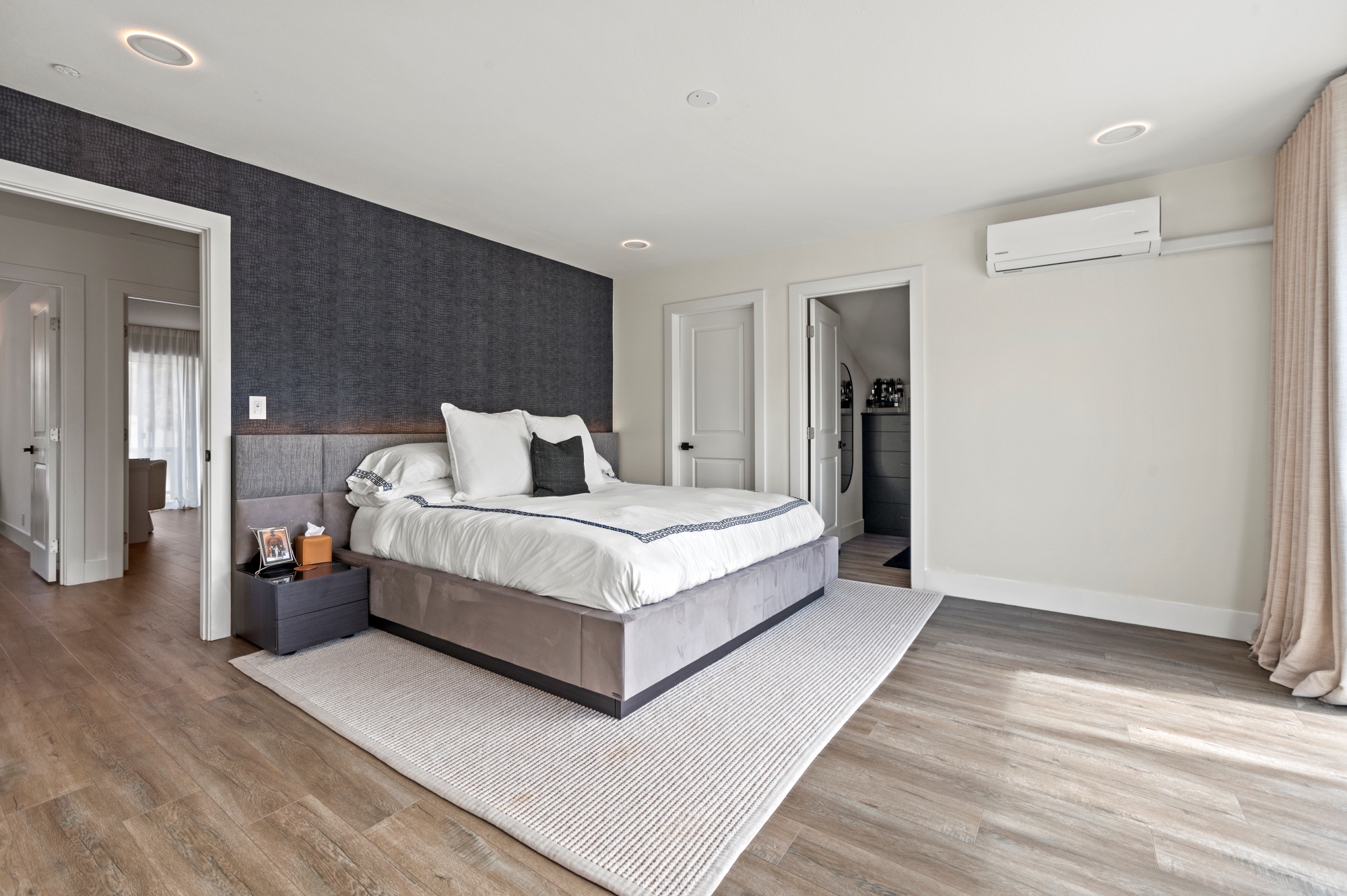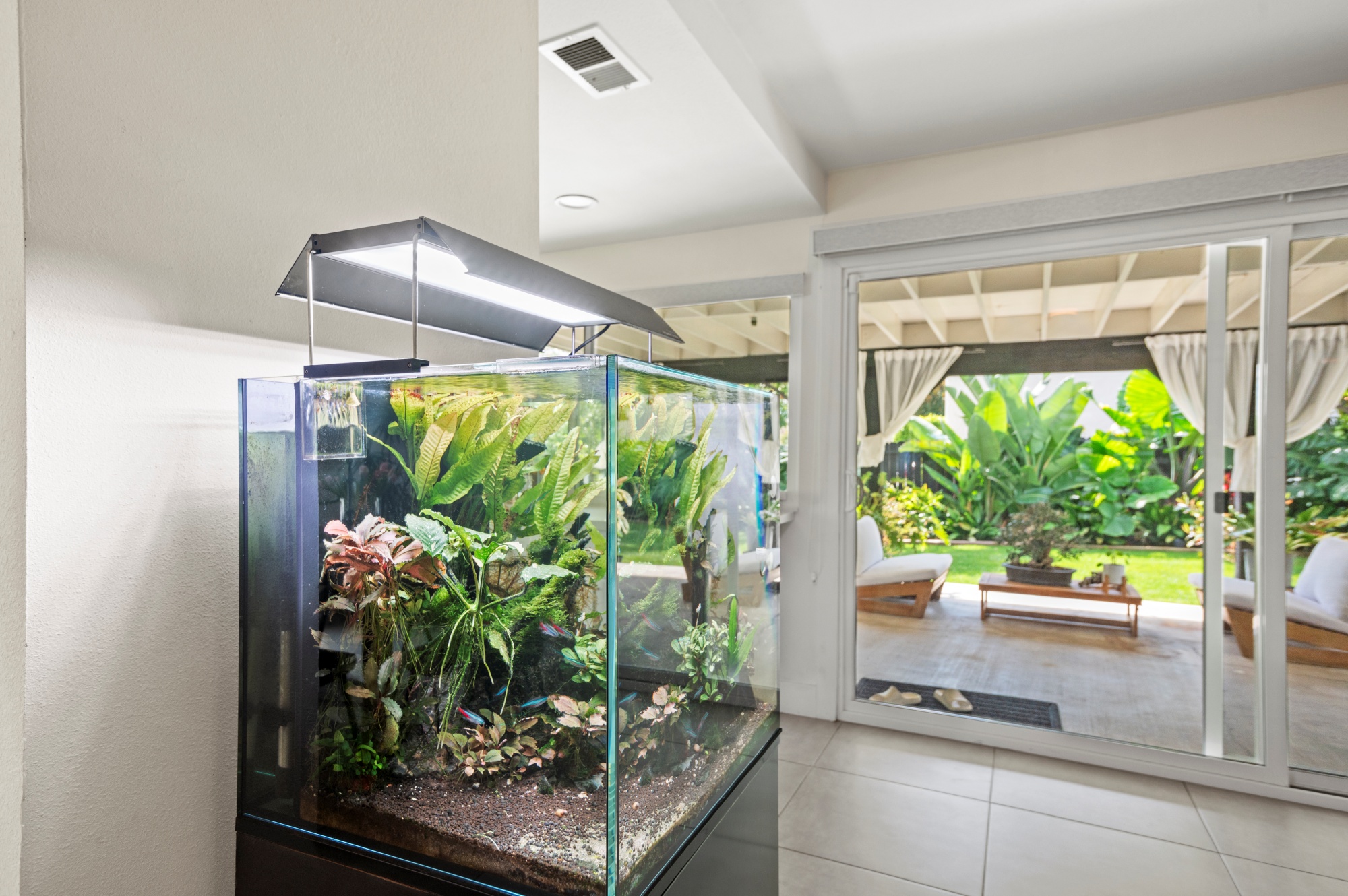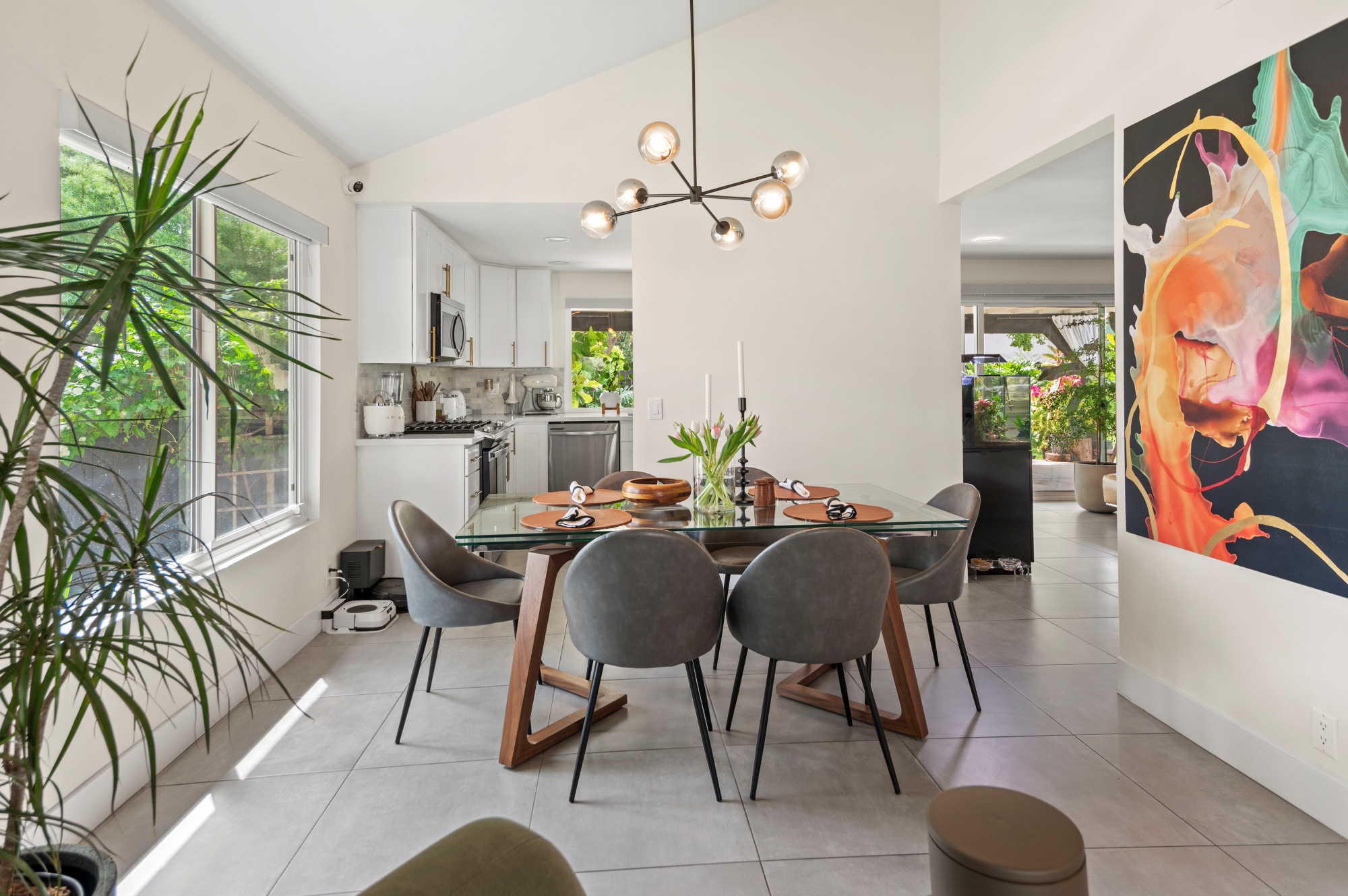 Modern Living on a Spacious Corner Lot – Fully Renovated & Move-In Ready! Set on a desirable corner lot, this beautifully upgraded home offers a rare blend of style, comfort, and functionality in a prime location. From the moment you arrive, you’ll notice the newly designed front and rear landscaping, along with a private backyard and an expansive second-story deck—perfect for entertaining guests or unwinding in peace. Step inside to a bright, open interior featuring brand-new tile flooring on the main level, luxury vinyl floors upstairs, and a striking hardwood staircase with a modern glass railing. The entire home is enhanced by recessed lighting and a custom-built entertainment center in the living room. The heart of the home is the fully remodeled kitchen, showcasing sleek quartz countertops, classic white shaker cabinets, and stainless-steel appliances—a true chef’s delight. All bathrooms have been tastefully renovated less than three years, offering a fresh, contemporary vibe. With four bedrooms and three full bathrooms, this home is designed with flexibility in mind. The layout includes a convenient downstairs bedroom and full bath—ideal for guests or multi-generational living—while upstairs you’ll find three additional bedrooms, including a spacious primary suite complete with a custom walk-in closet. Additional highlights include Built-in water softener, new window blinds, Quiet Street location near Sandpointe Park, just 5 minutes from South Coast Plaza, Easy access to the 405, 55, and 73 freeways. This is more than just a house—it’s a thoughtfully upgraded home in one of the area’s most convenient neighborhoods. Don’t miss your chance to own this turnkey gem!